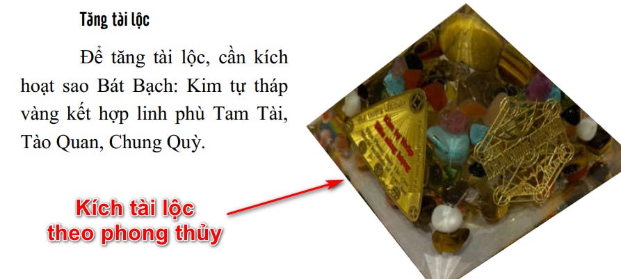Theo phong thủy, thì phải kích theo cung. Kích tài lộc hàng năm - sao Bát Bạch, cần màu vàng. Kích uy quyền - sao Lục Bạch, cần màu trắng. Màu ở đây cho bạn dễ hình dung, chứ cần dùng Kim tự tháo siêu năng lượng có trường khí cao mới có tác dụng, chứ thuần túy dùng cái bàn trắng, cái cốc trắng thì sẽ không thể kích được Lục Bạch, hoặc chỉ dùng cái đèn lồng vàng không thể kích được sao Bát Bạch.